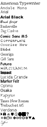 In addition to the fonts shown for System 8.5, Macintosh OS X offers the following fonts; they are displayed in Figure D-5.